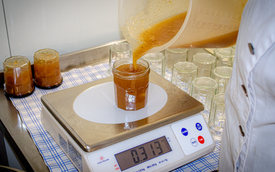 Nous utilisons des pots fabriqués en France, dans une verrerie charentaise. Les confitures sont cuites traditionnellement, mises en pot et étiquetées à la main.