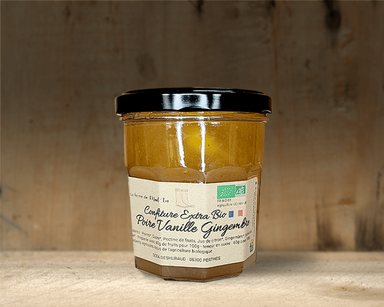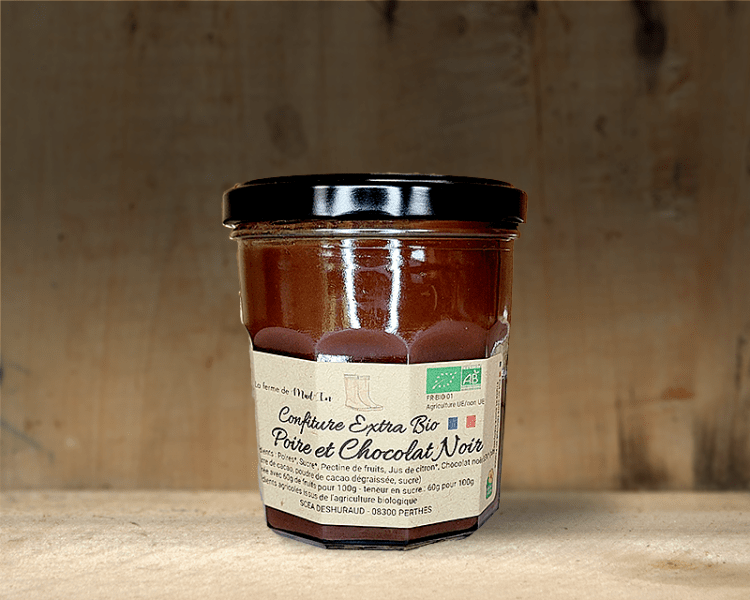 Toutes nos confitures sont faites dans notre laboratoire à la ferme. Nous ne travaillons qu’avec des fruits bio (pas de pulpes !!!). Ils sont issus au maximum de notre production (fruits rouges, rhubarbe, prunes, groseilles, groseilles à maquereau, pommes, cerises,…) Quand nous n’en avons pas assez, nous les achetons auprès de producteurs locaux (comme pour les poires).